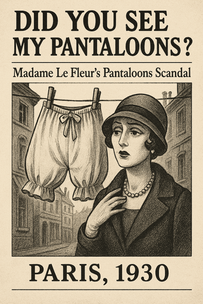 Chers lecteurs, si quelqu’un sait où ce Kamil a bien pu cacher les pantaloons de Madame Lafleur, nous vous prions de bien vouloir nous en informer immédiatement. Une enquête est ouverte, et nous cherchons activement à résoudre ce scandale. Nous invitons toutes les personnes ayant des informations à nous contacter, car, après tout, la grande Madame Lafleur mérite un service digne de son nom.